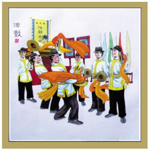 简介:法鼓是天津民间流传很久的一种娱乐活动。原是一种佛教法器的名称,鼓形体积较大,鼓面蒙江豚皮。传说首倡人是清朝康熙年间天津西头大觉庵的一位和尚,距今有300年左右,他将佛教里的音乐,剔出宗教因素,创造了一些鼓牌子,传教于附近的村庄,建立法鼓会,在年节喜庆日出会表演。相传天津法鼓的极盛时期是上世纪20年代前后,当时全市有法鼓会90多个(不包括天津郊县的法鼓会)。
