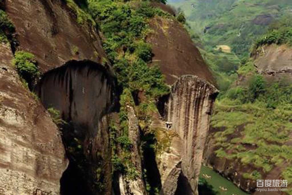 简介:大藏峰位于四曲的东面,这是一座巨大的岩峰,陡峭千仞,横亘数百丈。山巅耸拔如檐,岩溜皆滴落水中,叮叮咚咚地敲击着水面,恍如鸣奏着悦耳动听的琴音。舟过其下,令人有“甘午吹阴风,昼气黯若夕”之感,人语棹声,空壁回声,饶有趣味。峰上有金鸡洞,从七曲飞来的金鸡就住在洞中。峰下是卧龙潭,碧水无旋,深不见底。西为仙钓台,恰似一艘万吨巨轮正要起航。还有平林渡、御茶园、小九曲、试剑石、题诗岩等景点。