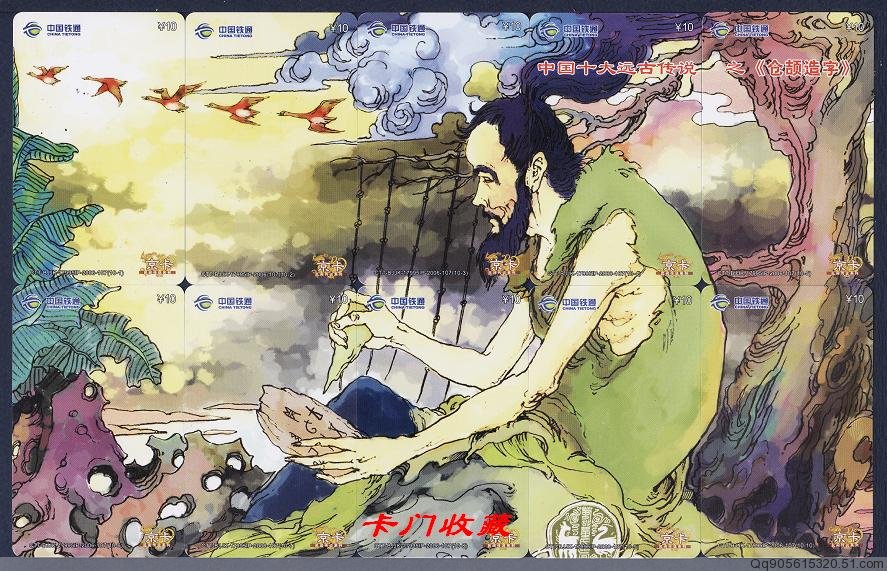 传说仓颉,四目重瞳,非常聪明,有一年,仓颉到南方巡狩,登上一座阳虚之山(现在陕西省雒南县),临于玄扈洛邙之水,忽然看见一只大龟,龟背上面有许多青色花纹。仓颉看了觉得稀奇,就取来细细研究。他看来看去,发现龟背上的花纹竟是有意义可通的。他想花纹既能表示意义,如果定下一个规则,岂不是人人都可用来传达心意,记载事情么?
