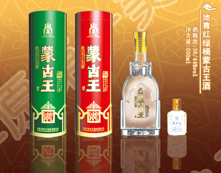 酒是蒙古文化的符号之一。蒙古族爱饮酒,擅酿酒,元·帝师八思巴集藏、蒙、汉及其他民族酿酒之精华,创造出御用“槽坊”酿造技术,开创了中国酒文化的里程碑,酿出了酒中珍品“槽坊”酒,被封为“御酒”。20世纪90年代,蒙古王人将800载元代“槽坊”酿造工艺与现代酿造技术成功进行了嫁接和融合,取科尔沁冲积平原无污染优质红高粱为主要原料,以自治区级企业技术中心、先进完善的生产与检验设备为依托,在“酒品人品合一是蒙古王人郑重的承诺”这一主题价值观的引导下,坚持“产品出厂合格率100%,顾客满意率100%”的质量目标,按ISO9000质量管理体系标准酿造出了高品质的浓香经典——“蒙古王酒”。凭借“窖香浓郁、入口绵甜、诸味谐调、余味悠长” 淳朴的内在质量,鲜明的民族特色包装和深厚的草原文化内涵,一上市就迅速被市场接纳,热销北京、天津、广州等全国上百个大中城市,远销韩国、日本、法国、比利时、东南亚及中国台湾等十余个国家和地区,把草原人民的深情问候带给了世界。产品先后荣获 “布鲁塞尔国际食品博览会金奖”、“中国消费者信得过名优产品”、“内蒙古自治区人民政府接待指定用酒”、“内蒙古自治区名牌产品”、 “内蒙古消费者喜爱的草原美酒”、2006“内蒙古第十一届运动会惟一指定用酒”、 “2008年度、2010年度中国糖酒食品行业畅销品牌”、“第十二届中国·呼和浩特昭君文化节唯一指定接待用白酒”等几十项殊荣,受到了广大消费者和业内专家的高度好评。一位欧洲国家友人饮了“蒙古王”酒,盛赞“欲罢不能,久久回味”;全国白酒资深人士沈怡方、高景炎、范仲仁盛赞“蒙古王酒,誉满神州”;著名歌唱演员腾格尔、张华敏激情歌唱《蒙古王》、《献你一杯蒙古王》,表达喜爱之情。