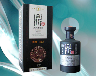 2007年从四川剑南春酒厂聘请酿酒工程师,结合我公司传统工艺精心调制出具有我厂独特风格的鼎夏1958系列酒:鼎夏老酒坊之灵农大曲、鼎夏老酒坊之灵农特酿、鼎夏老酒坊之灵农老窖、鼎夏贡、鼎夏老酒坊之“辉煌1958”三年窖藏、鼎夏老酒坊之“50度”窖藏、鼎夏老酒坊之“鼎盛1958”窖藏、鼎夏老酒坊之“盛宴1958”五年窖藏、鼎夏老酒坊之“红色盛世1958”八年窖藏、鼎夏老酒坊之“蓝色境界1958”十年窖藏,鼎夏老酒坊之“龙脉1958”二十年窖藏,产品已陆续上市,销售网络遍布宁夏及周边省区。