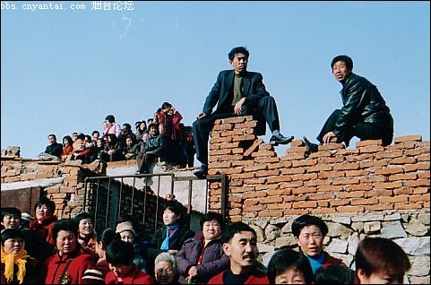 9点钟,鞭炮齐鸣,整个海滩沸腾了。祭祀后的人们,抬起供品,带着亲人们回家了.。一头猪分到几家吃,一桌酒请来几家客。无论走到哪家,主人都会热情地招待。这时候,戏台上的京剧开场了,从上午唱到晚上