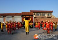 简介: 云胜锣鼓原名得胜锣鼓,起源于大同北面四十公里的得胜口一带。得胜口是大同外长城之重要隘口,也是蒙晋交通要道。古代大同,战争频繁,军队出征、还朝皆从此处、经过。每次得胜归来,则由一名德高望重长者率领民众在:得胜口敲锣打鼓,热烈欢迎凯旋将士,故称之为得胜锣鼓。后来它在云州(大同)地区广泛流传,因而改称云胜锣鼓。;相传在春秋战国时期,赵武灵王用武力扩大疆土,攻:打林胡、楼烦时,每次出征之前,均要击奏锣鼓以振人心;战场拼杀之时,也要击奏锣鼓以励士气;得胜还朝之后,还要击奏锣鼓以示庆功。后来,在两汉征匈奴J匕魏伐柔然。隋唐击突厥J匕宋抗辽金。明朝抵蒙古等历代战争中也都沿用云胜锣鼓,清朝“康乾盛世”,国家统~,民族团结,社会稳定,经济繁荣,云胜锣鼓逐步发展,已广泛应用于喜庆大典、商肆开业、秋后丰收、逢年过节……等事宜之中。其演奏队伍可大可小,小者十多人,大者百人左右。乐器为大鼓一面或三面,锣四面、挠四副、钦四副。锣鼓曲谱有“点将出征”/拼杀四门”/得胜还朝”/万民欢庆”和“过街秧歌”等,演奏人员身穿彩衣,手击锣鼓,通过“抢摘金瓜”/金龙戏水”/风摆细浪”/夜静摇铃”等高难度的演奏技巧和“二龙出水”/八字扇面”/一字长蛇”/丹凤朝阳”等队形变幻,充分体现出云胜锣鼓的四大艺术特点:急如狂涛骇浪,缓若涓水长流,重似霹雷闪电,轻比夜阑摇铃。使人感到鼓曲刚柔相济、节奏欢快、轻重有秩、层次分明,给人以赏心悦目之艺术享受。充分反映了塞上高原人民热情豪爽、雄浑剽悍、勤劳勇敢、奋发图强之乡土特色。在改革开放之年,云胜锣鼓这个古老的艺术大树又生新枝。大同矿务局晋华宫矿劳动服务公司在矿领导的大力支持下,成立了云胜锣鼓艺术团,团长李霖祥为了振兴云胜锣鼓,不借“三顾茅庐”,特地聘请大同市民间艺术家协会常务副主席邢明轩老师来矿任教。经过全体人员共同努力,刻苦排练,邢老师集三十多年文化艺术之大成,查阅大量资料,终于创作出《穆桂英大破天门阵》、《喜相逢)。似\仙过海》/猛虎下山》等锣鼓套曲。其中,《穆桂英大破天门阵》共分为“点将出征”/破天门阵”/班师还朝”/万、;民欢庆”四个部分组成。“点将出征”在大镰、小镣、大鼓/小鼓的轻击声中缓缓开始。接着是以喧闹之鼓曲鸣报军·:情,在节奏明快的锣鼓声中,穆桂英登台亮相、拜印点将、然后以浑雄有力的锣鼓激励杨家将士整装出发,奔赴前’线;“破天门阵”开始通过大镰J、擦、鼓褪擦鼓之声表示两军对垒,双方调兵遣将之战前准备。接着擂鼓四次,激战开始,全部乐器重敲快打,表示杨家将士冲入敌阵追击敌寇,大镣对打,小擦衬托则表示双方雇战,拼命厮杀之热潮;“班师回朝”开始鼓曲较为平缓、松弛,演奏人员队形不断更换,然后通过“轻、重、缓、急”几种打法,以示杨家将士胜利归来之乐观、自豪情景;“万民欢庆”在欢快的鼓曲声中开始,接着演奏“过街秧歌”/倒骑毛驴”等鼓曲,经过重复变奏,以示万民载歌载舞,欢庆胜利之激奋心情,使听众进入如醉如痴境界之中。云胜锣鼓是一种深为广大观众喜闻乐见的打击乐合奏。它既不同于晋南锣鼓,也不同于太原锣鼓,而演奏起来有人物、情节和故事内容,在山西锣鼓中足可自成一大流派。如今,晋华宫矿演奏的云胜锣鼓已经成为家喻户晓老幼皆宜的艺术形式,在历次文艺大赛中屡获殊荣。它不仅在当地深受欢迎,而且还与安徽圣泉花鼓共同代表中国,参加了1994年8月在京举办的第三届国际民间艺术节。他们以激昂豪放的演奏艺术水平赢得了中外观众的高度赞扬,演出场上掌声不断,欢呼之声络绎不绝,观众激动他说:“OK,云胜锣鼓!…‘它的演奏效果胜过西方交响乐团!”由于演出成功,艺术节组委会特地给他们颁发了“国际艺术节荣誉证书”,法国艺术团团长当场邀请他们参加1995年法国民间艺术节。随后,还有很多艺术团体抢着为他们录音、录像、拍照,围观群众摩肩接遁,热情欢笑热闹非凡。