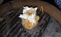 “烧麦”二字本作“梢麦”,是沿用明朝写法。北方麦子在四五月间麦梢上有一层白霜,而烧麦的收口处也有好似白霜的面粉,因而得名。“梢麦”从明代一直沿用下来,至上世纪四十年代才改为“烧麦”。烧麦起初只是都一处的一般面食品种,它是怎么出的名,恐怕一般人就不太清楚了。
