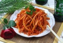 配料:辣椒酱、盐、白糖、醋、辣肉酱、味素各1大匙,姜丝少量。
