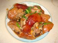 北京谭家菜名肴,以猪肘子为主料,经煮、蒸而成。成菜色泽红亮,肉肘酥烂,卤汁如胶,味道香浓,咸甜适口,营养丰富。具有增加皮肤弹性,养颜美容的作用。