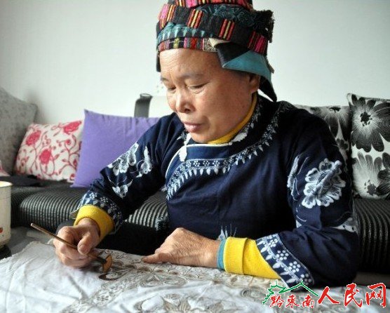 简介:蜡染是贵州省丹寨县、安顺县、织金县苗族世代传承的传统技艺,古称\"蜡缬\",苗语称\"务图\",意为\"蜡染服\"。采用靛蓝染色的蜡染花布,青底白花,具有浓郁的民族风情和乡土气息,是我国独具一格的民族艺术之花。