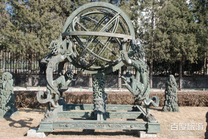 简介:北京古观象台属全国重点文物保护单位,位于北京市建国门立交桥西南角,是由元代大都城的东南角楼改建而成的高台砖砌建筑。现已经改建为北京古代天文仪器陈列馆,属于北京天文台。