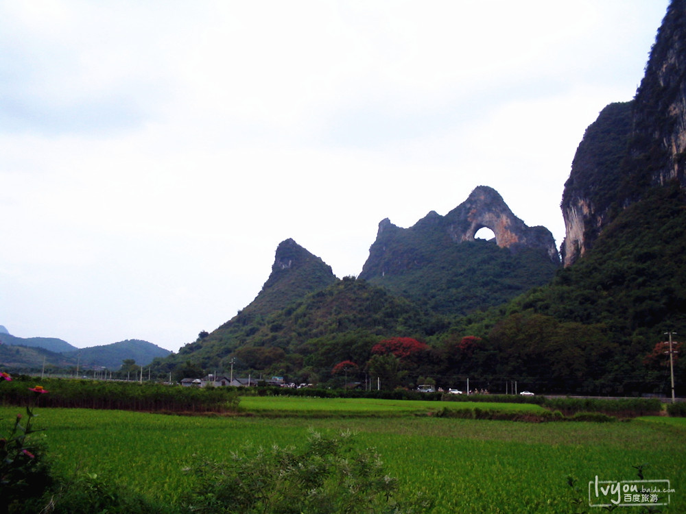 简介:月亮山是阳朔境内的奇景,它在高田乡凤楼村边,高达380多米。因为山顶是有一个贯穿的大洞,好像一轮皓月,高而明亮,所以人们叫它明月峰,俗称月亮山。