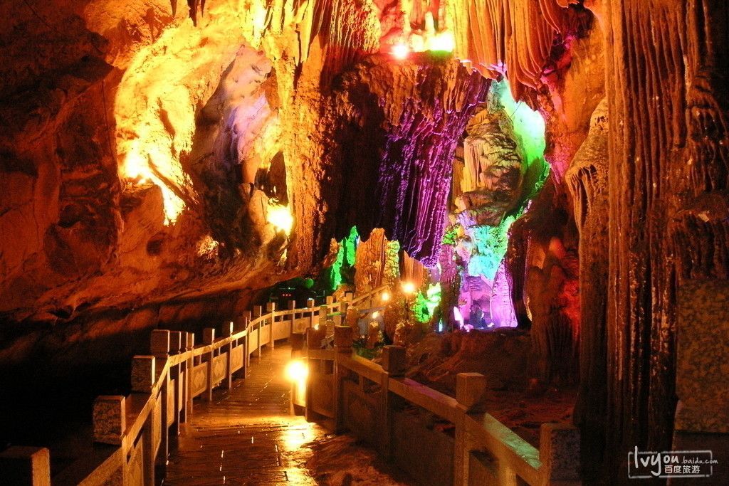口号:典型的喀斯特溶洞奇观,洁白无瑕的钟乳石,宛如夜空的银河倾斜而下,闪烁出像银子般的光芒。