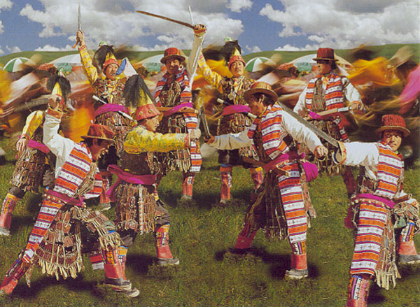 简介:卡斯达温舞主要流传于四川省阿坝州黑水河流域,因舞者身穿“甲衣”歌舞,汉语俗称“铠甲舞”。“卡斯达温”是黑水方言,“卡斯达”为“铠甲”之意,“温”或“贡”是“穿”的意思。“卡斯达温”是古代黑水人出征前,勇士们祈祷胜利,亲人们为他们祈求平安、祝福吉祥的一种民间祭祀性歌舞活动。