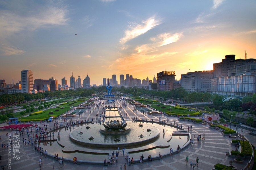 简介:泉城广场是省会济南的中心广场,地处山、泉、河、城怀抱之中。环顾四周,北览旧城区古风新貌,西观趵突泉喷涌潺湲,南眺千佛山青翠绵亘,东望解放阁清雅如画,是市民休憩盘桓之胜地。广场东西长约780米,南北宽约230米,占地约250亩。自西向东主要组成有:趵突泉广场、济南名士林、泉标广场、下沉广场、颐天园及童乐园、滨河广场、荷花音乐喷泉、四季花园、文化长廊、科技文化中心及银座购物广场等十余部分。