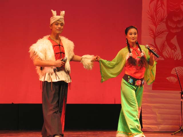 简介:二人台是流行于内蒙古中、西部地区和晋北、陕北、河北张家口等地的民间小戏。其原始曲调为当地的民歌,如由内蒙古中、西部地区汉族民歌演变的唱腔【打樱桃】、【压糕面】、【打后套】等,由晋北民歌演变的唱腔【走西口】、【五哥放羊】、【珍珠倒卷帘】等,由陕北民歌演变的唱腔【送大哥】、【十里墩】、【绣荷包】等,由蒙古族民歌演变的唱腔【阿拉奔花】、【王爱召】等,冀北民歌【十对花】,江淮民歌如《茉莉花》、《虞美人》等等。牌子曲则吸收了许多晋剧曲牌、民间吹打乐和宗教音乐。