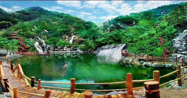 简介:九如山瀑布群风景区位于济南市历城区西营镇,距济南市区约40公里,东临章丘市,南接莱芜市和泰安市,占地面积12平方公里,植被覆盖率97%,空气中负氧离子含量每立方厘米7万个以上,居济南之首。景区按国家AAAA级标准建设,总投资3亿元。 整个景区分为九如峡谷游览区、天篷瀑布游览区、深潭飞瀑游览区、长城古道游览区和生态休闲避暑区,是济南市最大的自然风景区,亦是人与大自然和谐相处的典范之作。 景区在泰山北麓的连绵群山之中,属泰山山脉的丘陵地带。在政府的大力支持下,山东平惠装饰工程有限公司充分利用有利资源建成以自然景观为主题,以“层峦叠嶂的山峰,银珠飞落的瀑布,曲折险峻的栈道,潺潺而下的溪流”为特色,以“八潭、九瀑、二十四泉、三十六峰”为核心景观,集生态观光、休闲娱乐、游憩度假等多功能为一体、济南市南部山区首屈一指的超大规模自然风景区。