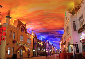 简介:青岛天幕城是市北区于2007年新建设打造的一条特色街,也是目前青岛市乃至全省唯一集旅游、餐饮、娱乐、休闲等多种功能于一体的室内步行商业街。天幕城位于原青岛丝织厂与青岛印染厂厂区内,与寿光路平行,毗邻台东商贸区、辽宁路两大商圈,贯通青岛啤酒街、文化街、婚纱街三大街区,区位优越,交通便捷。在天幕城的建设过程中,市北区创造性地把胶澳总督府、亨利王子饭店、青岛市民大礼堂、胶澳帝国法院、青岛花石楼、大港火车站等20多处具有代表性的老建筑做成微缩景观浓缩于此,形成了一道独特的万国建筑风景线。另外,市北区还有目的的展示了一些现代的著名建筑,实现了古典艺术与现代时尚的和谐共鸣,充分展现了东西方古今建筑文化的浓厚艺术神韵。经过这种独具匠心的设计,将单纯的商业步行街打造成了人文气息浓厚的青岛历史文化建筑长廊,呈现了城中有街、街中有城,城街一体的独特景象,使游客们在品尝天下美食的同时还能感受到青岛独特的城市魅力和文化内涵。天幕城最大的建筑特点和艺术特点就是天幕、水幕和天幕电影。天幕城设计理念独特,化自然景观为人文景观,以人文景观展现自然景观,率先采用国际上先进的“天幕”设计手法,利用声光电等不同技术手段,在室内空间营造蓝天白云、璀璨星空等室外感觉,以“天幕下的漫步”为特征,营造“旭日东升”、“正午阳光”、“夕阳晚霞”、“午夜星辰”四种壮丽的自然景观,变幻时空,给人以震撼、新奇的视觉享受。