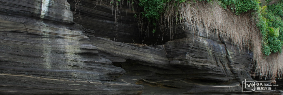 简介:滴水丹屏位于涠洲岛滴水村南岸边,原名滴水岩。绝壁上部绿树成荫,壁上层间裂隙常有水溢出,一点点往下滴,如朱帘垂挂。由于海蚀作用,岩石的外表形态犹如一有眼、有鼻、有嘴、有发的巨型侧面“人头像”(现已倒塌),景致优美。