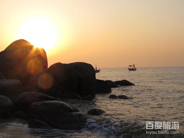 最富特色的是这里的海豚和奇石。海域内,常年活跃着数百头五彩斑斓的中华白海豚,而且一年四季都能近距离观看,每当渔民出海捕鱼或游人出海观光时,海豚常常追逐渔船、亲渔夫、逗游客,或在海中嬉戏,构成了一幅人和海豚亲密无间、和谐相处的美好画面。这里的另一个特色是遍布各处的奇石,沙滩旁、浅海中奇石林立,千姿百态,惟妙惟肖、令游人叹为观止。主要景观有:风情渔村、伏波庙、海豚岛、威德寺、观潮石、母猪石、三娘石、风流石、天涯石等。