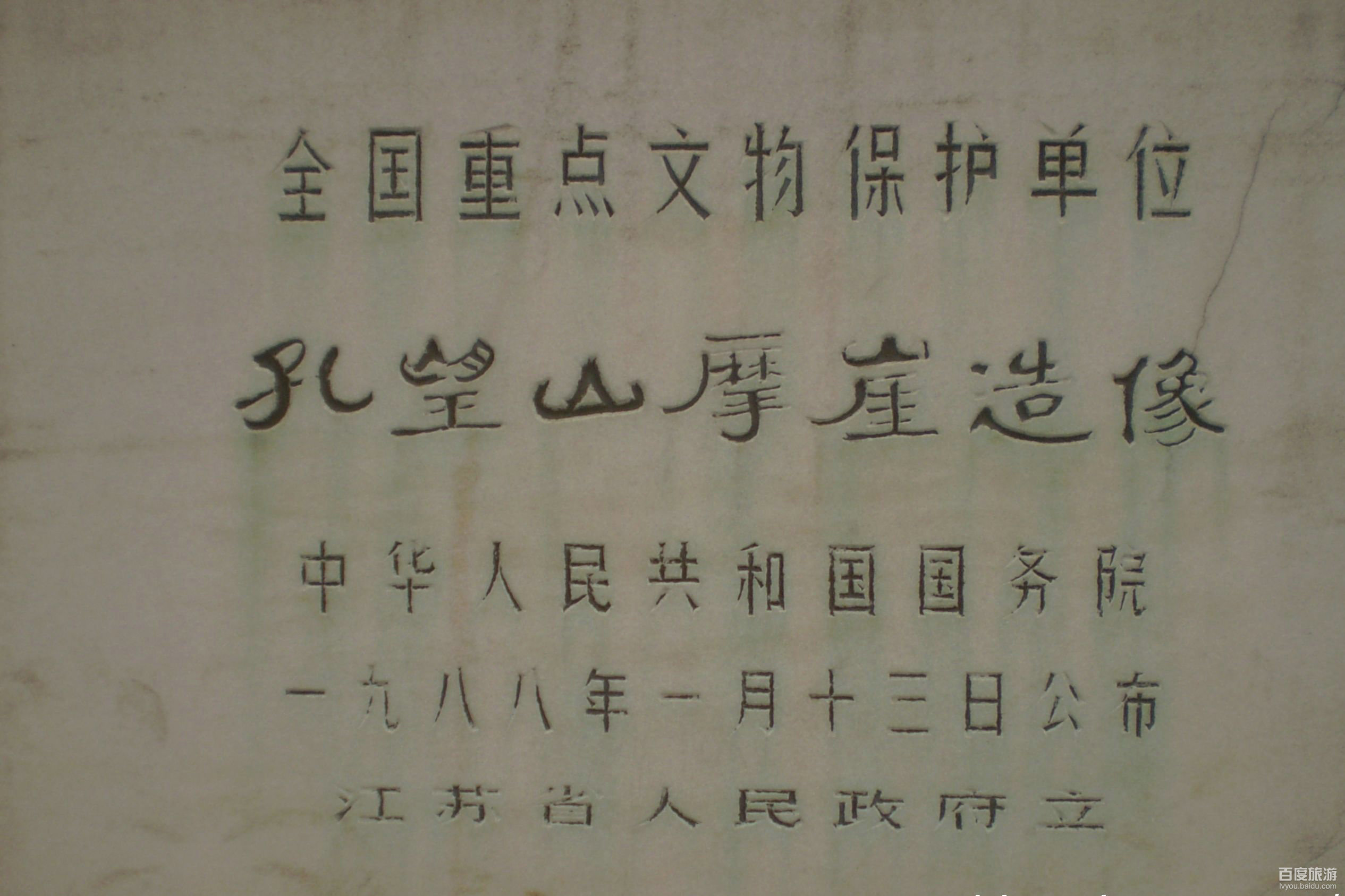 著名景点有佛教造像、龙洞庵、龙洞及众多的佛教摩崖石刻等。其中最负盛名的是位于孔望山南麓的佛教造像,比敦煌莫高窟还早200年,被史学家称为“九州崖佛第一尊”。