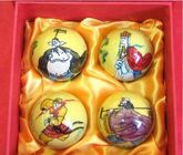 简介:“保定铁球”(俗称健身球)不仅是娱乐工具,而且有着群众观健身功能。球的外表明光铮亮,其内部结构复杂,球内有球,并装音板,两个为一付,俗称\"一公一母\"。拿在手中运转坊来,音响各异,有高有低,清脆悦耳,既能收到调筋理神之功效,还能在铁球的缠绵悦耳音响中陶冶性情。旧时官宦、商贾进京往返于保定余中,必购买此物,作馈赠亲友或达官显贵的见面礼。 现在的保定铁球,是在沿袭了明清古老制作技术上,经过改进与革新研制而成的,工艺更加精细,结构更加科学。 实践证明,健身球不单是一种运动工具,而且具有调理精神,强壮筋骨的健身作有,对某些常见病,如血压、冠心病、神经衰弱、颈椎病、肩周炎、偏瘫后遗症、手指功能障碍等,均有一定的疗效。