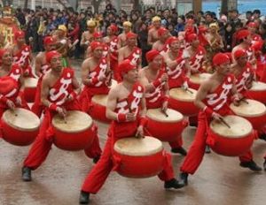 韩城阵鼓是一种宫廷式锣鼓,表演时气势宏大,队伍严整有序。虽为宫廷式锣鼓,其严谨表演形式却融入了喜庆的因素。群众将其用于自娱自乐,庆贺风调雨顺,国泰民安,颂扬公德。整个表演队伍喜用百面锣鼓出现,增添其大气磅礴的喜庆气氛。