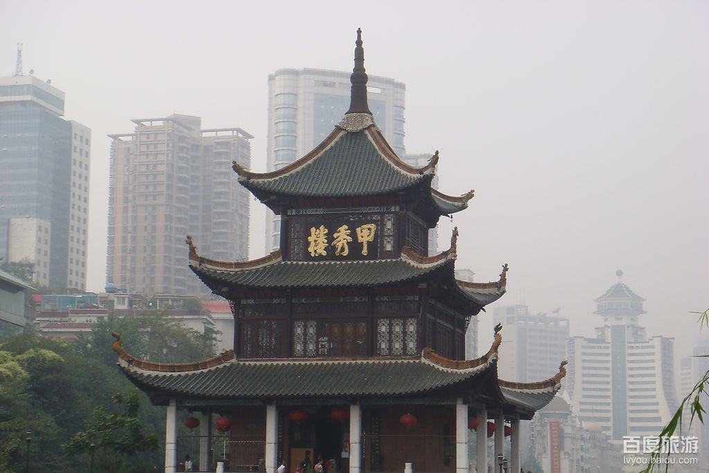 简介:甲秀楼在贵阳市城南的南明河上,以河中一块巨石为基而建。始建于明,后楼毁重建,改名“来凤阁”。清代甲秀楼多次重修,并恢复原名。现存建筑是宣统元年(1909年)重建的。楼上下三层,白石为栏,层层收进,由桥面至楼顶高约20米。南明河从楼前流过,汇为涵碧潭。楼侧由石拱“浮玉桥”连接两岸,桥上原有小亭一座叫“涵碧亭”,现已拆除。甲秀楼朱梁碧瓦,四周水光山色,名实相符,堪称甲秀。