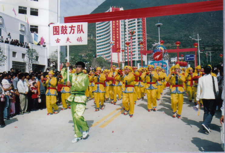 简介:兴山围鼓,又称“八音子”(唢呐用八个眼孔吹奏而得名),起源于武当山附近地区,100多年前通过谷城传人和保康传人两条途径传入兴山。传入前是受道乐强烈影响并吸收当地民歌及地方戏曲曲牌营养而逐渐形成的一个既能唱又能奏的民间音乐品种,是以唱为主的“八人班子”的坐唱形式,除击乐外还有笙箫管笛。笙箫管笛在兴山声断音绝,日趋衰亡。现今的兴山围鼓以吹打为主,极少演唱,广泛用于红白喜事以及平时自娱,其编制为豉1架(由1个鼓1个嘣子组成),大锣、马锣、叶子(大铙)各1面,唢呐1-2支。以鼓为主。围鼓曲牌依体裁形式分,有由民歌小调进入围鼓形成的“玩曲类”,有由兴山花鼓戏、陕南八岔戏等地方戏曲曲牌进入围鼓而形成的“地方戏曲类”,还有道教音乐曲牌进入围鼓形成的“武曲子”类(又称“神曲子”、“正曲子”)。演奏特点主要表现在唢呐的吹奏及击乐的握捶之上,唢呐用八个音孔吹奏,不用循环吹奏法,鼓及马锣的握捶方法,击鼓手形以及鼓者的演奏“手份”都十分讲究。演奏起来音调明朗,气氛热烈,时而欢快奔放,时而清新婉转,使人百听不厌,它已成为兴山人民生活中不可或缺的组成部分。