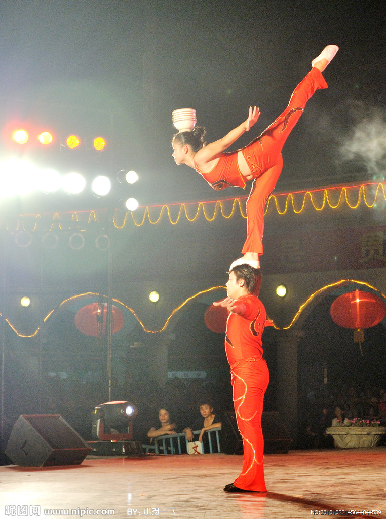 简介:中国传统杂技节目。演员头部顶一摞瓷碗,表演劈叉、金鸡独立、别元宝、倒立等技巧动作。20世纪50年代以后发展了对手顶碗、软腰顶碗、高梯顶碗、四人造型顶碗等形式。近年创造的高难动作有:拐子倒立脚面夹碗、蹬碗单臂倒立斜拉叉、探海脚举碗变单臂倒立回碗、脚举碗乌龙绞柱、单腿举碗站头射雁、旱地拔葱举单手顶、双尖头脚举碗打滚顶、三尖双重卡脖顶挂人等。