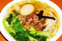 4、面粉30斤加水18斤擀也面索,再揉和均匀,用灰水7两(如果灰水溶则少加,灰水淡则多加)撬和揉匀。案子上擦抹清油,将面搓成条,揪为重五两的条,上面盖上湿条布,然后根据每个人善食的爱好,分别拉成大宽、韭叶、二细、芥麦椤(三角条)一窝丝等形状的面条下锅,面熟后捞入碗内,将牛肉汤、萝卜、肉丁、浮油适量,浇在面条上即成。并以每个人的口味加上适量的香莱、蒜苗、葱花及辣子油。特点肉汤清沏鲜美、面条筋柔、入味,营养丰富实惠。