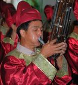 简介:蓝田普化水会音乐是千余年来流传在陕西省蓝田县普化镇一带专门用于佛事、善事、祭祀的民间吹打音乐。蓝田县位于关中平原东南部秦岭北麓,是古长安南通荆楚巴蜀的门户。据史料记载,可容纳千名僧侣的蓝田悟真寺水陆殿在唐代已是官方和民间举办大型佛事的重要地点。在水陆道场等大型佛事活动中,吹鼓乐助兴营造气氛,蓝田普化水会音乐这一形式由僧人和民间乐手传承至今。