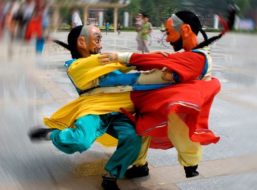 此民间舞蹈已流传上百年,现面临失传境地。近期,二鬼摔跤被市政府公布为市第一批非物质文化遗产。