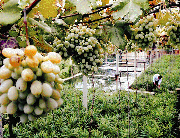 洪门村注重生态庭院的综合开发建设,紧密结合生态旅游,实施“绿色家园”工程,逐步扩大葡萄的种植面积,不断更新品种,由单一的老劣品种更新为巨峰、黑提、红提、马奶子、美人指等十八个名优稀特品种,从业人数达460人,使全村葡萄种植面积达到350亩,年产量210万斤,年收入达120万元。同时又注重葡萄的加工和转化,发展了具有旅游观赏价值的葡萄盆景,极大提高了生态村的内涵和品味,增加了农民收入。