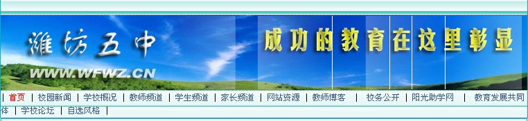 简介:潍坊市第五中学坐落于山东省潍坊市潍城区向阳路西侧,创建于1958年,1988年迁入现址,是一所具有54年办学历史的潍坊名校。学校占地面积60亩,主体建筑面积2.1万平方米。现拥有36个教学班,287名教职工,学生3000余名。山东省潍坊第五中学创建于1958年,是一所具有50年办学历史的潍坊名校。现拥有38个教学班,166名教职工,学生2200多名。学校师资力量雄厚,拥有全国优秀教师2人,省、市级优秀教师和教学能手67人。