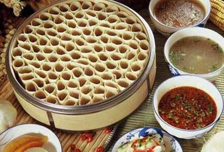 用压河捞的工具(偶是从山西带来的,不晓得北京有没有卖的)做法:这个就简单了,莜面揉成长圆的棒棒,塞在这个工具里,转上面的把手,莜面鱼鱼就自己出来了。