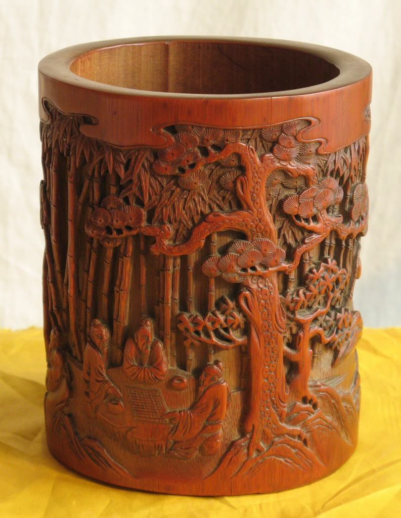 黄岩翻簧竹雕具有纹质细洁,花色多彩,色泽古雅,牢固耐用等特点。产品品种主要有茶叶盒、邮票盒、烟盒、首饰盒、糖果盒、笔筒、花瓶、台灯等实用品,有台屏、挂屏、壁挂等装饰性强的欣赏品。