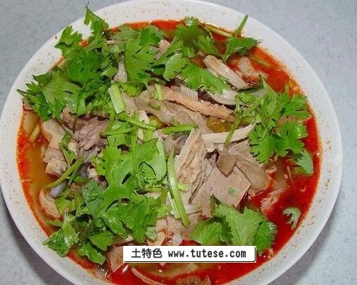 特产文化:相传在元朝年间,成吉思汗西征西夏途中,在陕西榆林附近被敌军围困在荒山野岭处,粮草已尽,部队的供养陷入严重危机。在万般无奈的情况下,部队的后勤人员把原来屠宰的羊的头、蹄、肝肺等早已丢在山沟荒野的废物利用起来,把羊肝、羊心、羊肠、羊肺、羊肚儿等用水洗净,然后用刀剁成碎块,烩在一个大锅里放上盐。煮熟以后,因没有葱和调味品,有一个伙头军无意将野地里采来的野香菜洗净切碎放到锅里。因为不是葱,他受到了上司将官的责骂,但是等把这锅汤烩好,经军队里众将官、士卒品尝后,都称赞此汤的味道堪称一绝,比平日里吃的烧烤羊肉等佳肴还要好上几倍。