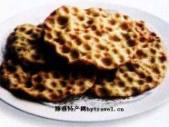 简介: 砂子饼,亦名疤饼。这种疤饼,直径一般是26厘米到33厘米,饼既薄而且脆,饼脸用卵石烙成,凸凹不平,因而有“疤饼”之称。