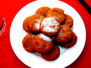 简介: 山西运城的一种传统地方风味小吃,黍(方言读fu)面油糕(当地又称作黍面油茶糕 方言fu mian you ca gao)是用上好的黍子 (shǔzi)面,包上大枣,下油锅一炸,黄亮香脆,伞上白糖,香甜可口,余味悠长。黍面油糕的做法极其讲究,大多属于秘方不外传。