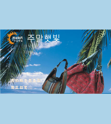在韩国,在日本,周末阳光休闲女包的唯美眩丽、不凡品质和卓越的服务,已经深得时尚女性、商业人士的青睐,成为韩日休闲女包的经典之作。今天,面对中国市场日益盛行的韩日流行风;面对中国消费者日益成熟的休闲唯美需求,周末阳光选择了中国。