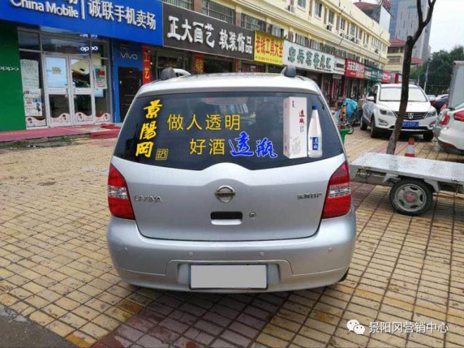 凡张贴景阳冈透瓶车贴的车主,在车贴活动期间,每月在指定办事处购买透瓶酒壹件,可享受再来一瓶的福利(每月每车只限壹件,不可累加)。