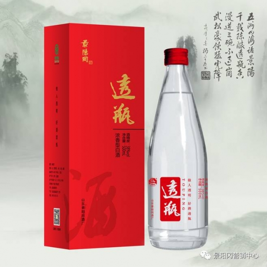 中间为透瓶广告语“做人透明,好酒透瓶”。