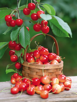 樱桃果实色泽红艳光洁,味道甘甜而微酸,可谓味美形娇,营养丰富。樱桃的含铁量居水果之首,经常食用樱桃可驻容养颜。“手擘才离核,匙抄半是津。甘为舌上露,暖作腹中春。”这是著名诗人白居易描述樱桃的名句。
