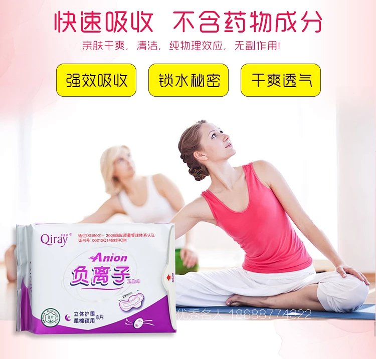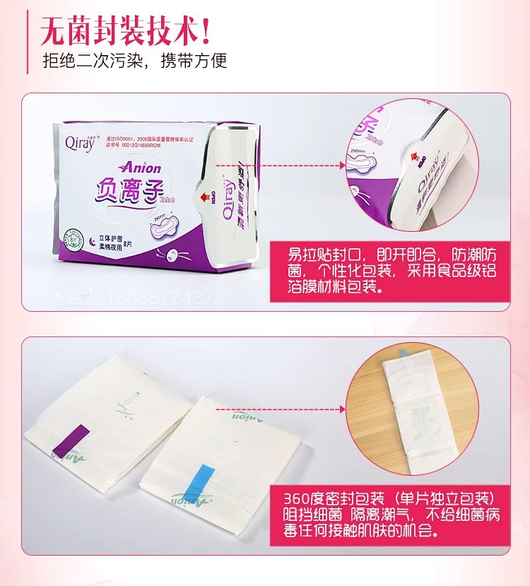 富迪Qiray 卡蕾伊负离子卫生巾 月月爱负离子卫生巾夜用8片 正品