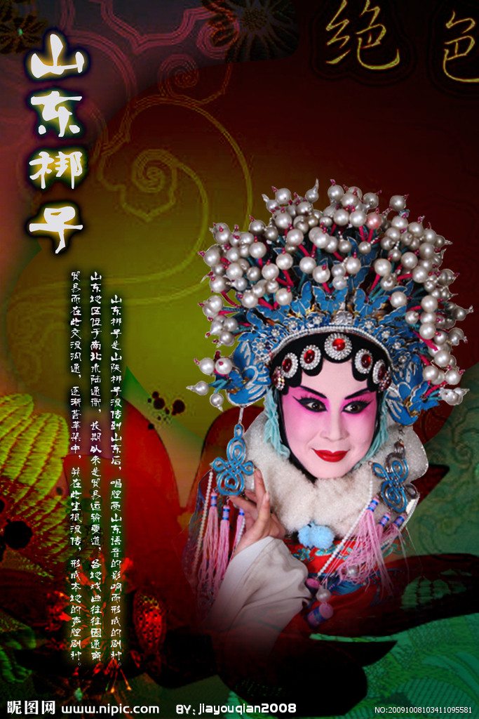 简介:山东梆子是山东省地方戏曲剧种之一。又名“高调梆子”,简称“高调”或“高梆”,又因其高昂激越的特点,又被人称为“舍命梆子腔”。主要流行于山东西南部的菏泽、济宁、泰安等地的大部分县市,以及聊城、临沂等地区的广大城镇乡村。因流行区域的不同,群众对其称呼亦有别。如以菏泽为中心的,习称“曹州梆子”;以济宁、汶上为中心的,称为“汶上梆子”或“下路调”,总称“高调”,以区别于流行在鲁西南、豫北、冀南的“平调”。1952年,定名统称为“山东梆子”。