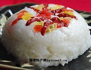 特产功效:八宝饭健脾益胃,补肾化湿 色泽艳丽,甜筋油润,绵甜不腻,吃起来别有风味
