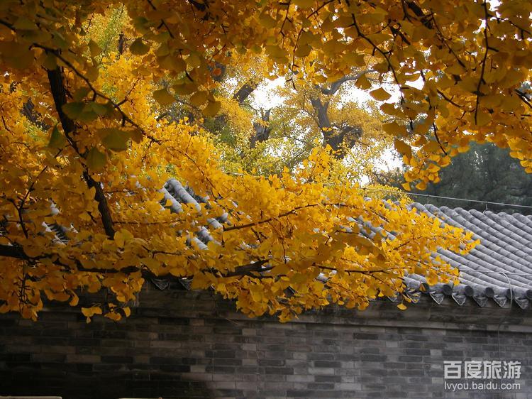 大觉寺八绝:古寺兰香、千年银杏、老藤寄柏、鼠李寄柏、灵泉泉水、辽代古碑、松柏抱塔、碧韵清池。