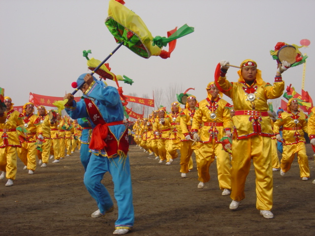 然而,民生的艰难更加激起了这个地域中人们的生存和反抗欲望,面对着黄河水的泛滥肆虐,奋起抗洪抢险救灾,筑堤固坝,导水排涝,用自己的辛劳与坚韧,顽强的使自己的双脚坚实的站立在这片多灾多难但却一直养育着他们的土地上。而灾后的散墒抢种,辛勤劳作,怎能不让他们用自己的特有方式来庆贺丰收喜悦、表达情感呢?