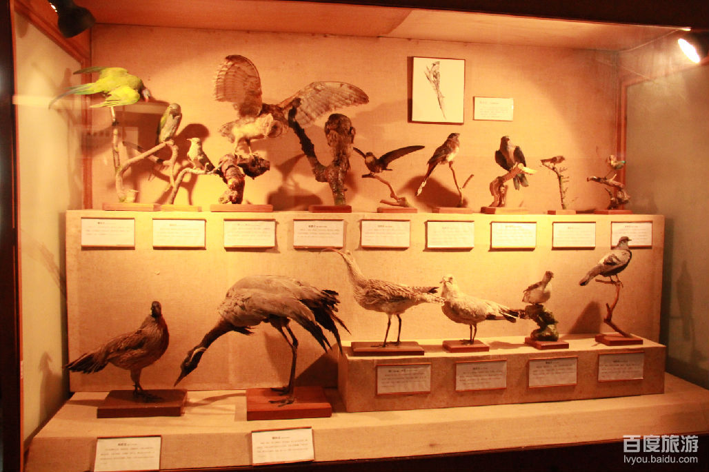 整个博物馆陈列按低等到高等的顺序排列,反映生物演化的历程,以动物界各个门,各个纲,各个目的代表物种,并配有各种生态景箱环境,既科学展示了各种动物的基本特征,又形象反映了它们的栖息及其与人类的密切关系,其中许多为我国特产和一二级的保护动物。另外馆内还经常举办各种专题展览,动物标本制作和化石修复演示, 为广大观众提供多种服务。馆内设有古人类史、古动物史陈列室,以及无脊椎动物、两栖类动物、哺乳动物、爬行动物、鸟类、鱼类、古尸等陈列室。此外,还经常举办各类专题学科展览。