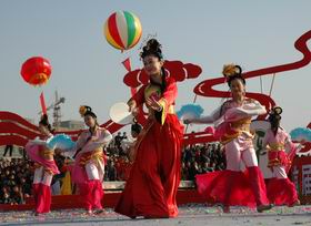 它的主要组成部分有三:表演--花鼓灯,声腔——扬琴,再加上流行在淮北平原的民间舞蹈。