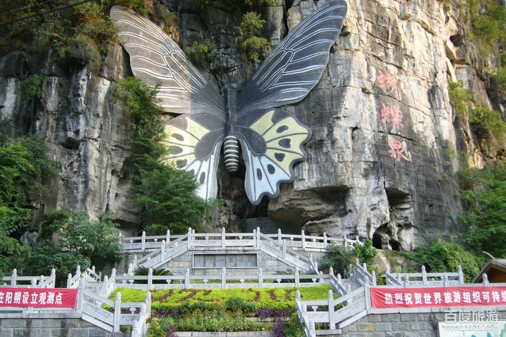 简介:蝴蝶泉位于桂林阳朔月亮山风景区“十里画廊”的精华地段,源于景区内一岩洞中有一酷似蝴蝶的钟乳石而得名。景区是中国目前最大的活蝴蝶观赏园,景区里有上千种、数万只蝴蝶与人和谐相处,是一个生态旅游风景点。另外,这里是阳朔山水的典型代表,有“不到蝶山顶,不知阳朔景”之美誉。