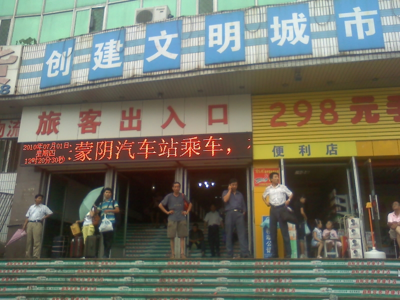 话说:从蒙阴汽车站出来就找售票口提前问好返程车票和时间,可转了一圈也没找到,还淋着雨让我很不爽,问了3个路人才知道:在出口往右300米处,有图10为证。--本人出差只分左右,不分南北。